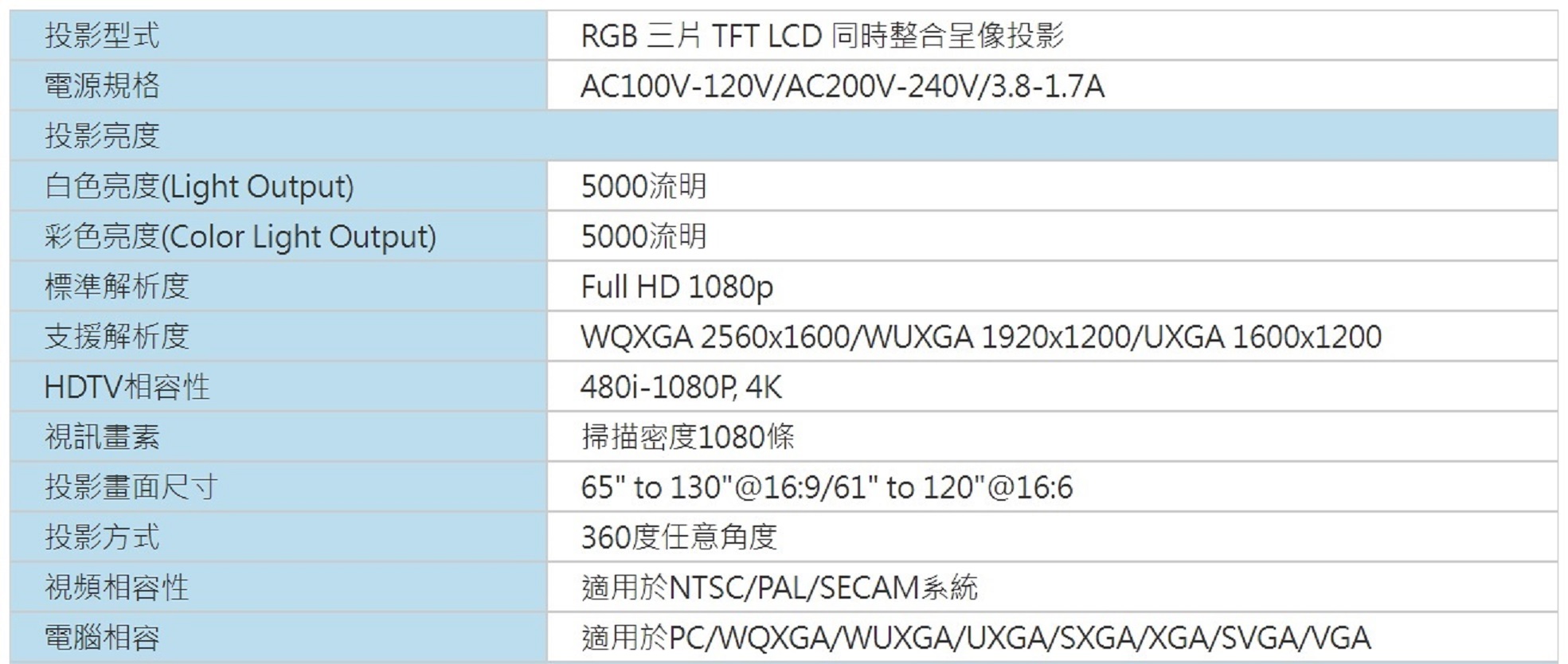 | 分類 | 5000流明 雷射超短焦投影機 |